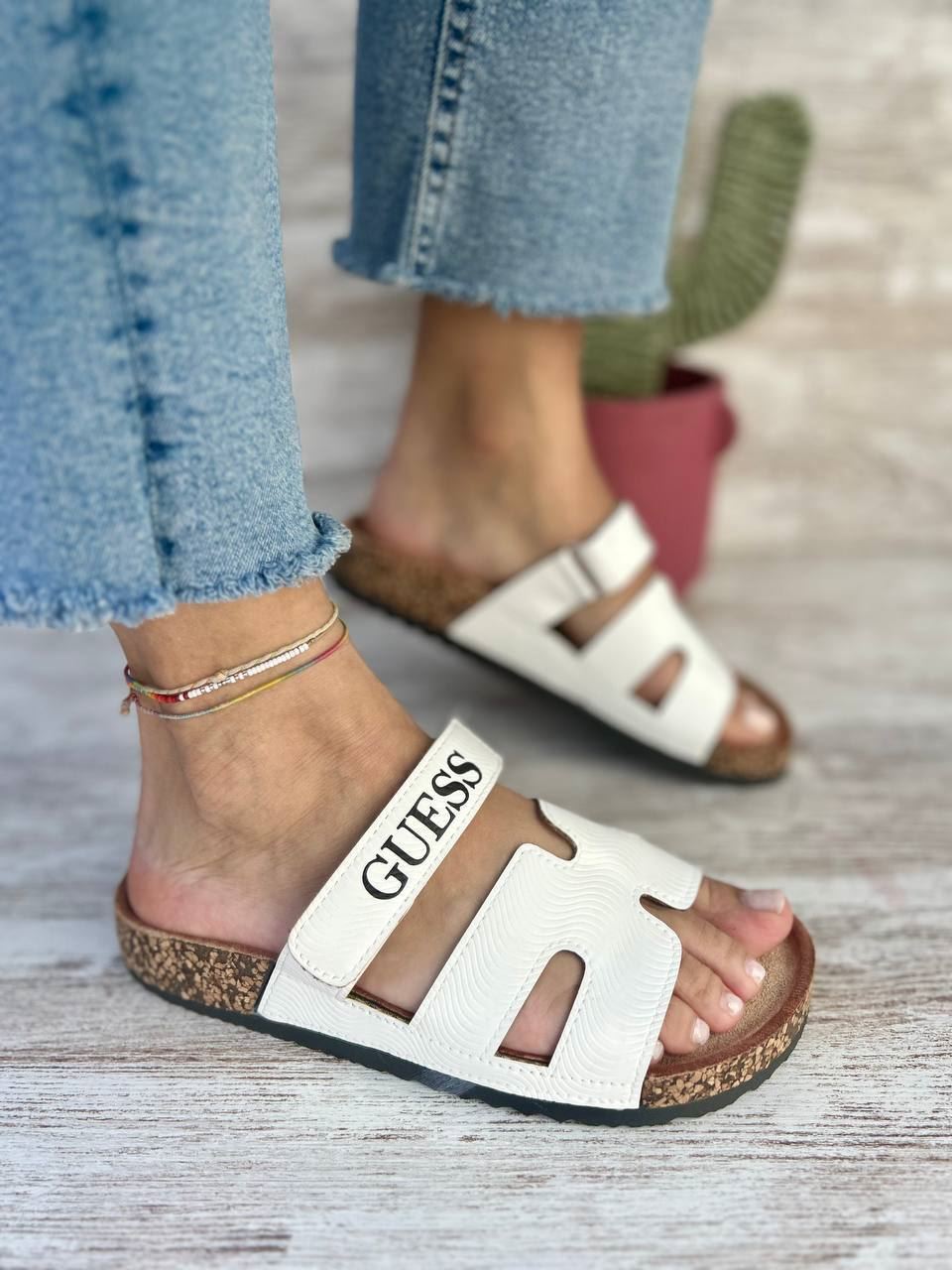 Comprar Sandalias Guess bajas por 25,00€. Stock del producto según combinación. Disponible en números y colores: 36 y blanco; 37 y blanco; 38 y blanco; 39 y blanco; 40 y blanco; 41 y blanco; 36 y negro; 37 y negro; 38 y negro; 39 y negro; 40 y negro; 41 y negro.